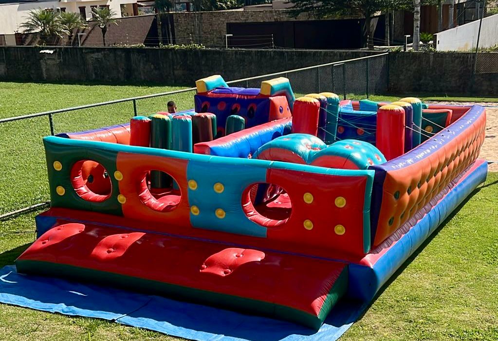 Descrição: Quem vai ficar em pé até o final? Com equilíbrio, força e muitas risadas, a Guerra de Cotonete é um duelo divertido e seguro em cima da base inflável!
